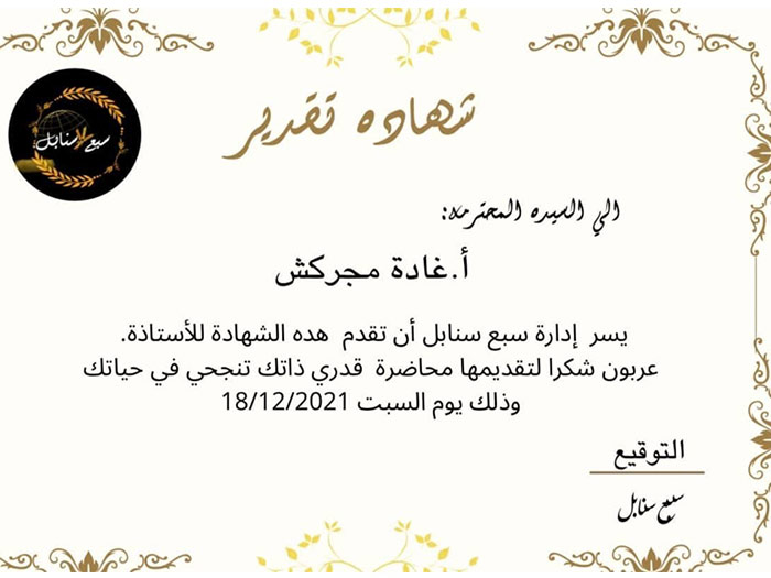 مريت بمشاكل كثيرة بعد انتقالي لبلاد المهجر، كنت أعاني من صعوبات الحياة، وحتى في التعامل مع أسرتي ضمن بيئة جديدة ومختلفة. شكراً كثير للأستاذة غادة اللي ساعدتني بتجاوز هذه الصعوبات واسترجاع الاستقرار بأسرتي.